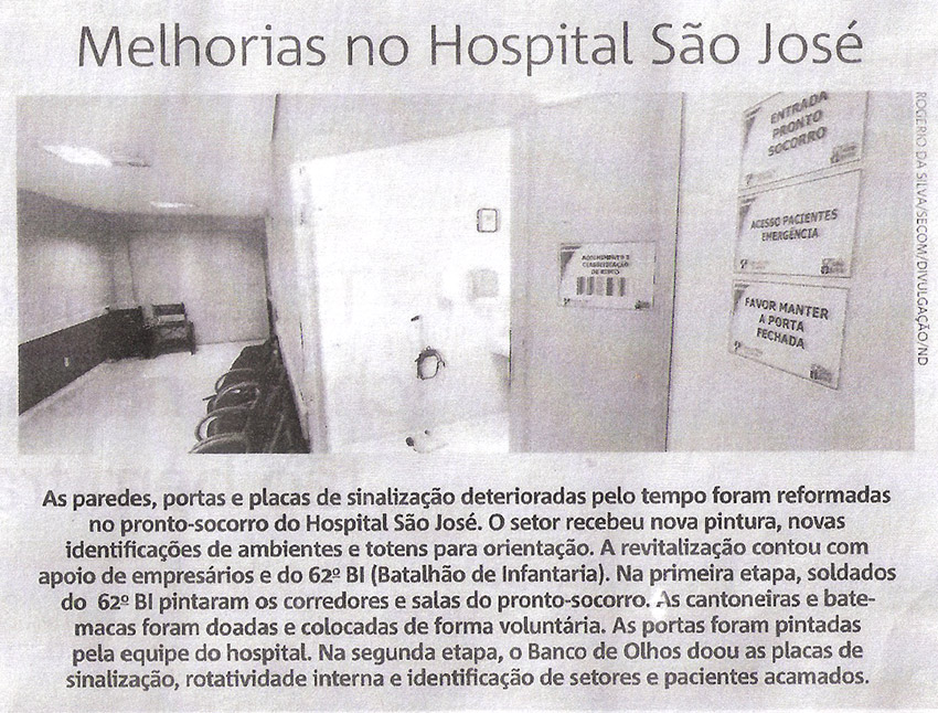 As paredes, portas e placas de sinalização deterioradas pelo tempo foram reformadas no pronto-socorro do Hospital São José.